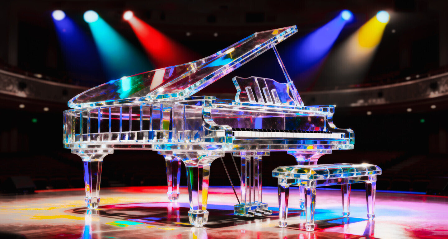 LORS D'UN CONCERT D'UN PIANISTE IMAGINAIRE, IL PRESENTA SON INSTRUMENT. UN VERRIER PASSIONNE DE MUSIQUE LUI CREA CE PIANO TOUT EN VERRE. LA SONORITE EST REMARQUABLE. L'INTERPRETE LUI DONNA ET LUI DONNERA TOUT SON TALENT...
